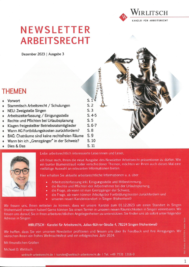 Newsletter Arbeitsrecht Dezember 2023 | Ausgabe 3